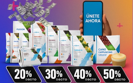 y como afiliado Fuxion. El ahorro incluye el descuento por volumen menos el costo del kit de inicio.